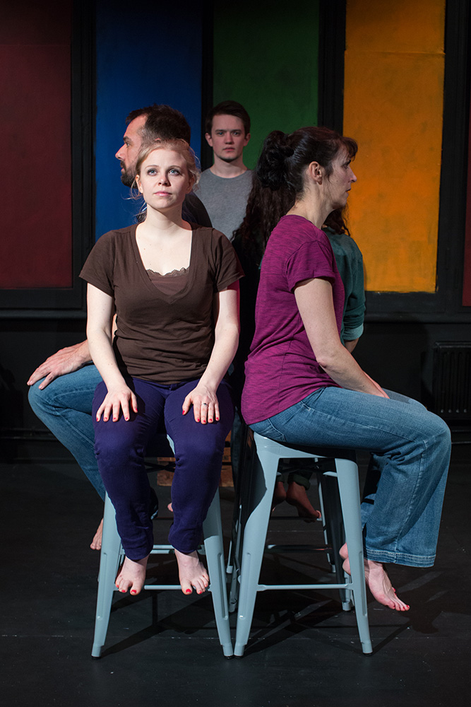 Blackout opens out of the darkness with five characters frantically running around barefoot, shouting about their old notions of what an alcoholic looks like. It is blatantly apparent from the outset that tackling common stigmas around alcoholism will be central to the piece. Blackout sustains this direct and immediate approach throughout and it’s not long before we learn that all five bolting bodies are recovering alcoholics, married to meetings and navigating the ubiquitous 12-steps. The audience soon become privy to the sky-highs and floor-lows of their various relationships with alcohol. This hard-hitting piece of verbatim theatre has been composed by one of its stars – Mark Jeary. Jeary has based the main dialogue of the play on interviews with recovering alcoholics. Following a critically acclaimed run in Edinburgh, Blackout is now running here in London under the creative direction of Gavin Curtis.