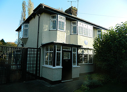 ‘Ticket to Ride’, followed by ‘Day Tripper’ played as our National Trust driver Andy drove us to The Beatles Childhood Homes on Friday, starting with Mendips, at 215 Menlove Avenue under a ‘blue suburban sky’, where John Lennon lived with his Aunt Mimi from the age of five when he was placed in her care, until he left home in 1964, at the age of twenty-three. For many, it almost seemed a shrine of sorts, and I confess to feeling a certain sense of awe in John’s former bedroom, with its’ guitar, copy of a childish thank you note, records, storybooks, magazines, cartoons by John and original wallpaper and posters, knowing that he’d written some of The Beatles best loved songs on his guitar in that little room. The fact that the room was recreated mattered not. I think there wasn’t a person out of the fifteen from our minibus who didn’t feel an almost palpable sense of loss in that room. Looking at personal family photos in albums on the dining room table downstairs, one of John on his 21st birthday at Mendips, another of him and baby son Julian in 1963, furthered that feeling.