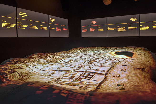 Gallery Installation shows the Great Fire spreading across London (c) Museum of London