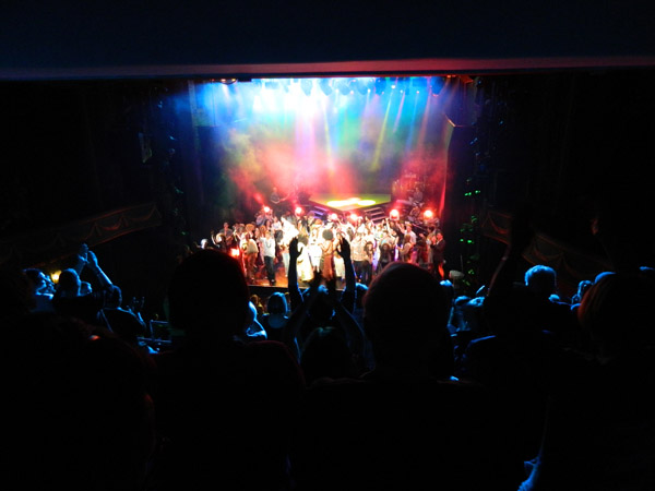 A live onstage band with a couple of roaring guitars completed the cast, rocking or rolling along, though moments when singing was allowed to predominate and musicianship merely complimented worked out best for all concerned, including those listening and trying to sing along in the audience. Thankfully, tribal costumes in the show seemed more like pieced together outfits than specially made period pieces.