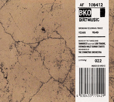 Dirtmusic consists of three seasoned musicians: two Americans, originally, from opposite sides of the States – Chris Eckman of the Pacific Northwest, leader of acclaimed US band The Walkabouts, and Chris Brokaw from NYC, who’s collaborated with many musicians, including Sonic Youth’s Thurston Moore and, Australian Hugo Race, who has been, among other things, an original member of The Bad Seeds. But Dirtmusic’s cross pollinating has, more recently, shifted onto an even more seemingly, arid landscape, namely, that of The Desert Festival in Essakane near Timbuktu in 2008, where they first encountered Tuareg band Tamikrest and discovered a whole world of sounds they’d been unwittingly gravitating towards until then. A year later, Dirtmusic returned to this region to record an album with Tamikrest, (with whom they’d jammed non-stop in ’08), at Studio Bosgolan in Bamako, resulting in BKO (short for Bogolan airport) and, to produce Tamikrest’s debut release - Adagh. BKO is experimental in the truest sense of the world, as it is the result of, as Dirtmusic’s Chris Eckman clarified, his group, and Tamikrest spending ‘2 days in a studio, jamming and writing songs’ and on....’Day three (we) – press recorded and saw what we got.’ If BKO represents the results of those full on, limited experiments, one can only imagine what more lengthily studio time may yield.