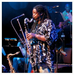 Multi-instrumentalist, widely known experimental saxophonist, Courtney Pine amiably opened the show with fine support from his fellow musicians on, among other things, selections from his 12th album, Transition in Tradition, in part a tribute to saxophone star Sidney Bechet. With 25 years of touring and a heap of experimentation under his belt, Pine was an appropriate opener for this show focusing on the ultimate moment in the history of jazz. As a black musician who was awarded a CBE for his outstanding contributions to the music world in the New Year’s honours of 2009, Pine is also a definitive representative of the burgeoning British jazz scene. On this outing, along with his excellent band, Pine on his custom built extra long tenor sax offered some astoundingly agile notes, re-tracking some of the trajectory of his career via new and old compositions along the way, underscoring numbers intermittently with cool-hot Art Blakey, African, Latin, Reggae, French, film noir and you name influences in the mix, often with a sense of ironic melodrama and humour. At times, Pine’s sax even emitted subterranean sounds, a la didgeridoo gone urban and underground.