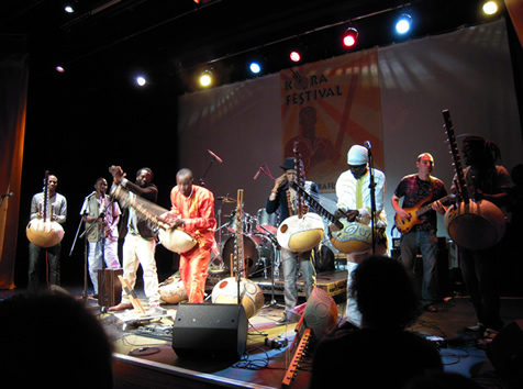 My first close encounter with the kora was at WOMAD Charlton Park ‘09, when Guinean griot Ba Cissoko amazed the crowd at his workshop with the revelation that the kora has, as its’ strings, ‘fishing tackle,’ available at any ‘sports shop.’ Perhaps Western audiences’ general lack of soulfulness is what made for incredulity at his revelation. However, further explorations into the origins and trajectory of the kora reveal that it is, indeed, a sacred instrument for the griots playing it, and a sacred trust for those bringing their traditions forward. Since that fortunate introduction, I’ve become a fervent fan of those elevating the kora’s purposes, so it was at times, a heightened, humbling experience being in the company of so many masters of this challenging, compelling instrument.