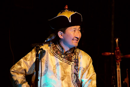 Jargal is truly amazing, both for the astounding range and breadth of his throat singing and musicianship on Horse fiddle, known as morin koor and, also, for his sense of humour on this, his auspicious ‘first trip to the UK.’ The higher registers of his voice conjured up mental images of great mountains and plains, and when he sang in the lower range, the sounds he made put us in mind of the chanting of the Gyuto Monks of Tibet. The fact that his CD was one of those sold out in the WOMAD tent the next day proved that the newfound popularity Jargal so obviously enjoyed onstage that night wasn’t unfounded.