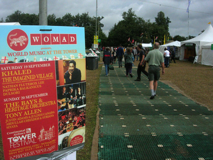 Editor's note: While it is admirable that recycling and trash bags are distributed to festival goers on their way in and recyling bins are positioned around the grounds and Oxfams and a couple of other charities have stalls at the festival for the recycling enthusiasts among us, I still feel there should be more of a 'green' presence at WOMAD. Apart from the charity stalls and recycling bags, a lone 'solar operated' cafe', a couple of organic food stalls and a small Greenpeace stand were the only representions of our planet's urgent environmental concerns. And, in light of the fact there was only one stall selling individual pieces of fruit at extortionary rates, some stalls selling local produce for those preferring natural, raw food wouldn't go amiss either.